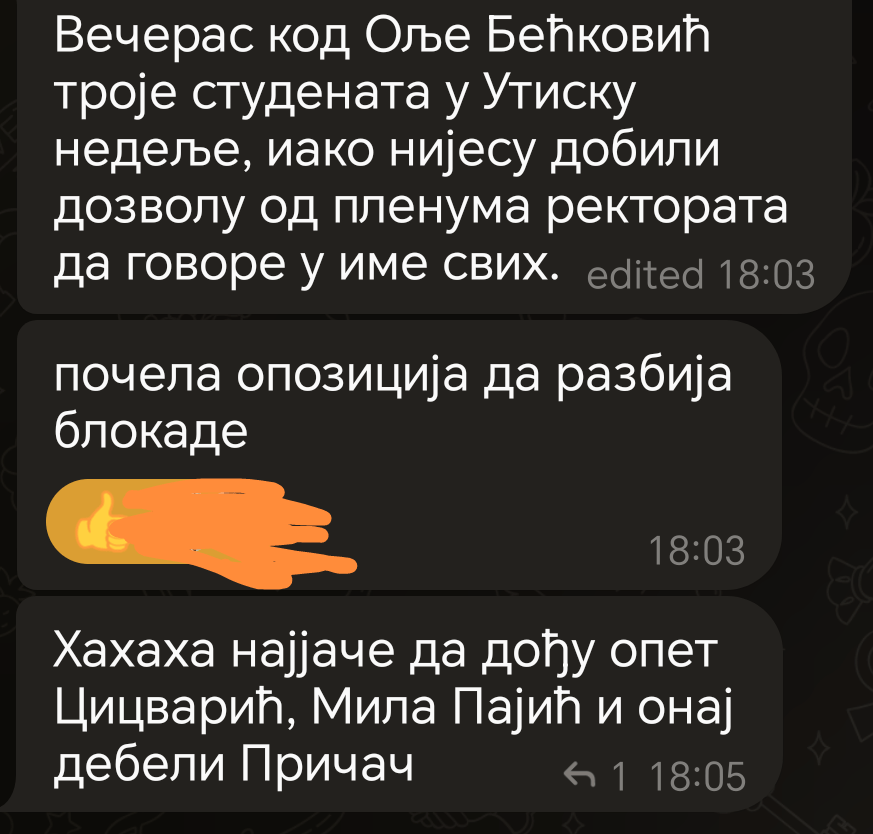 Пујо се непогрешиво бави битним питањима која су од кључног значаја за решавање ситуације у земљи: ког порекла су студентски представници и, уопштено, шта студенти уопште има да се питају. Како да кажемо, прошло је много, много година од када су „студенти гоwна“ мимови били популарни.