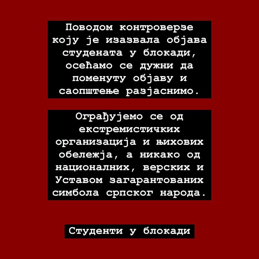 Prethodnu noć i ovo jutro je karakterisala informacija da se najpre plenum beogradskog Pravnog fakulteta, a ubrzo i zajednički plenum svih studenata jasno ogradio od NVO-a i drugih aktivista koji se lažno predstavljaju kao organizatori protesta. Ovo je dovelo do bure na društvenim mrežama, pre svega u krugovima bliskim strankama poput SSP-a ili PSG-a, zato što je jasno da su ovi ljudi donekle njima bliski.