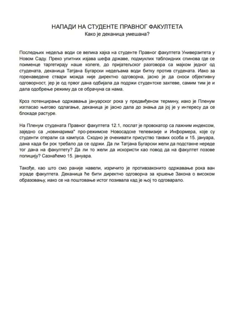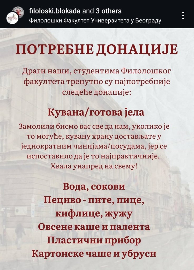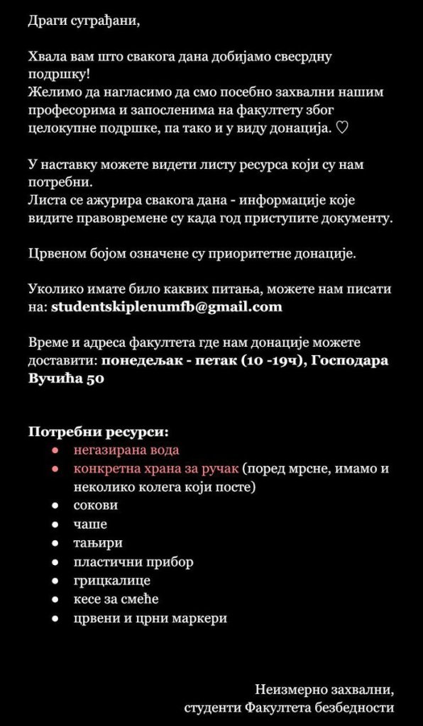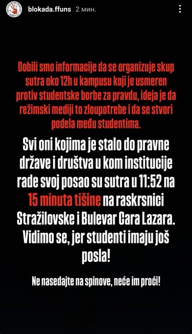 Novonastala društvena situacija, kako god da se razreši, zahteva stalnu budnost naše ekipe, tako da ćemo uživo prenositi i komentarisati sve u vezi sa studentskim blokadama, protestima, represijom vlasti i aktivnostima opozicije.