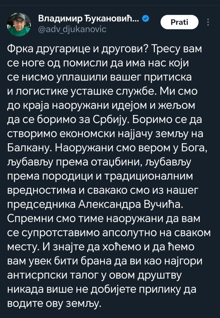Dobar i ovaj drugi dan u godini. Jutros se žvaljava hulja opet odnekud obratila na TV-u. Nećemo prenositi šta je rekao, osim da se radilo o gomili sumanutih laži i gnusnih uvreda na račun studenata.