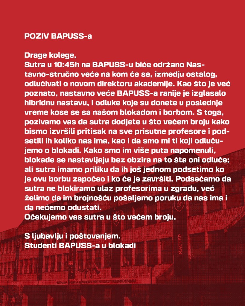 Incidentne situacije ispred PBF-a ovog jutra, svi studenti se pozivaju da dođu ispred što pre.